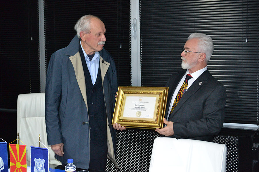 На седницата, ректорот Миленковски, му додели благодарница на доајенот на македонскиот туризам и досегашен претседател на Одборот за соработка и доверба со јавноста на Факултетот за туризам, г-дин Ангел Иванов за долгогодишна соработка и несебичен професионален ангажман во промовирањето на туризмот во Македонија.