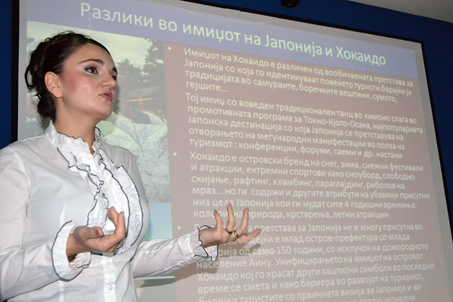Furthermore, through the promotional project for Hokkaido, Ikonomovska explain the utilization of the tourism of the island in a proper way, as another reason for attracting foreign tourists. By applying a comparative analysis throughout the presentation provided examples of similar tourism potential in the country and the possibility of utilizing the available potentials in a similar manner, starting volcanic tourism hortukulturni tourist attractions, categorization and management of the national parks, progressive and unique management the zoo, the color of nature tourism, urban tourism and film, agriculture and wine tourism. Specifically noted the introduction of a new model or a horizontal connection of the departments in the organization of the system, rather than vertical connection that is present in most countries.